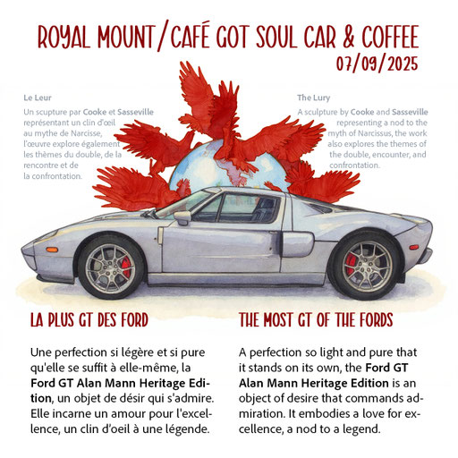 Obtenez une image souvenir que j'appelle "illustration narrative" de votre voiture à une exposition majeure mais pas que. Un texte d'accompagnement remémorera votre participation à l'exposition en question.